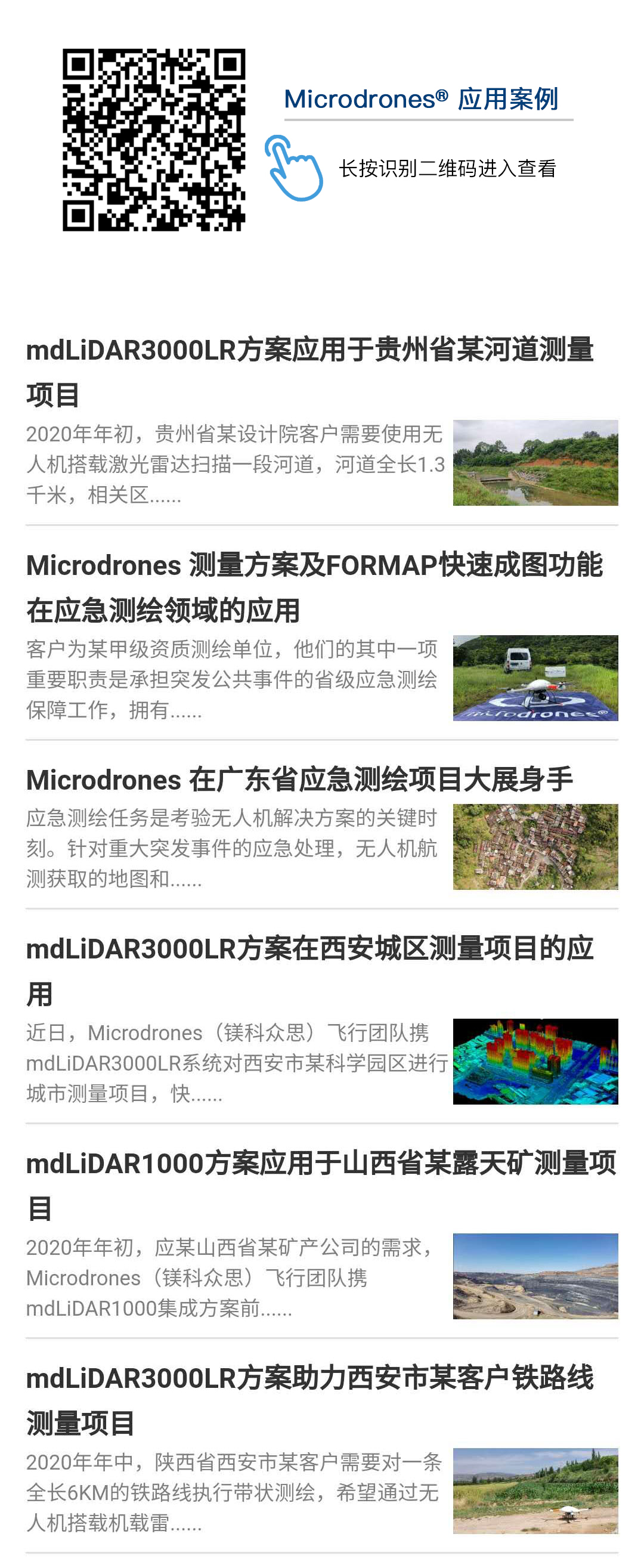 长按二维码,进入Microdrones 官方公众号「应用案例」分享空间。