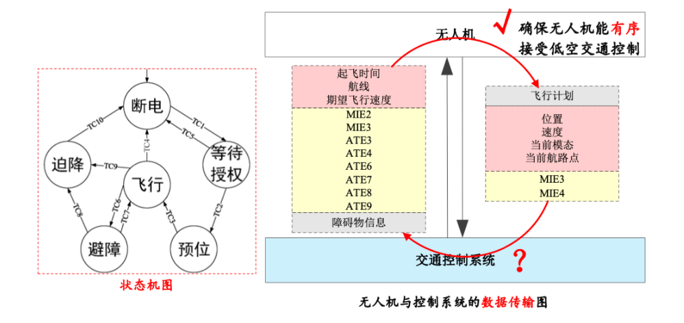 我们需要对无人机发出指令,这就需要有一定的标准的接口,接口我们有一些模态比如断电模态、等待授权模态、预位模态、飞行模态、避障模态、迫降模态给无人机发指令,这样的话,无人机就相当于被我们的交通控制系统控制了。这个接口我们目前还不是那么标准,我希望最终我们能有一套空中交通系统的标准。