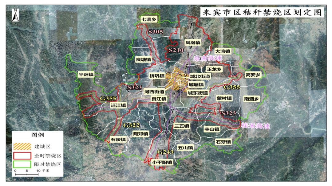 为切实做好市区(含兴宾区所辖乡镇,下同)秸秆露天焚烧禁烧工作,进一步改善市区环境空气质量,坚决打赢蓝天保卫战,根据《中华人民共和国大气污染防治法》《广西壮族自治区大气污染防治条例》等法律法规,结合《广西秸秆禁烧区和限烧区划定技术指导规范》(桂环函〔2020〕1039号)要求,现就划定来宾市区秸秆禁烧区有关规定通告如下: