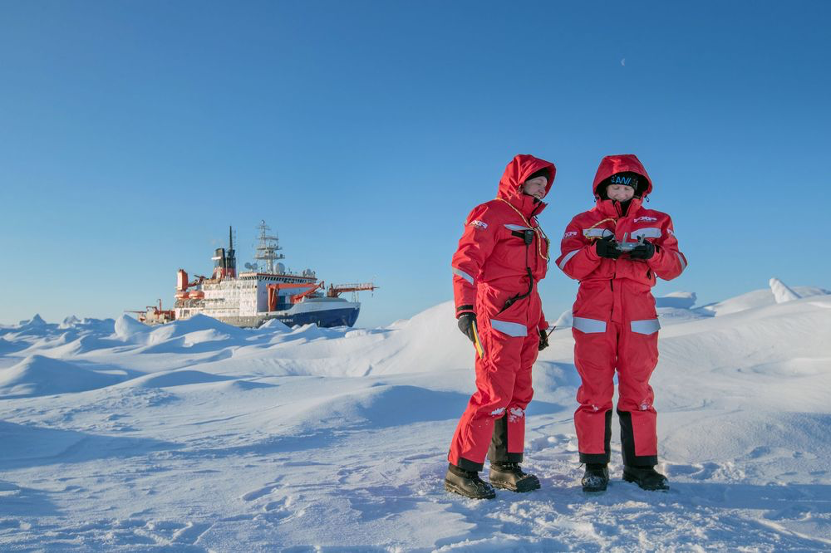 芬兰气象研究所的科学家Roberta Pirazzini和Henna-Reetta Hannula在北极操作无人机