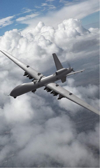 MQ-9无人机使用一台功率为900马力的涡轮螺旋桨发动机,它的飞行速度可以达到捕食者的三倍。此外,它的载弹量也更大,装备6个武器挂架,可搭载海尔法导弹和500磅炸弹等。每架无人机都配备一名飞行员和一名传感器操作员,在地面控制站内实现对“收割者”无人机的作战操控。MQ-9B无人机是MQ-9无人机的升级产品,也是该系列无人机的最新产品,由美国通用原子公司于2012年自投资金研制,2018年11月完成了首飞,可以增添多种任务模块,衍生出“空中守卫者”和“海上守卫者”等型号。