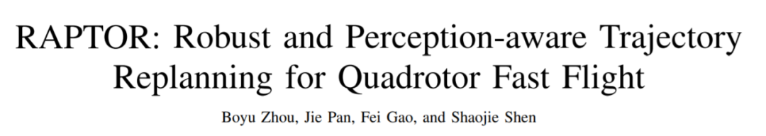 在室内布置的障碍中进行的测试。播放速度:1 倍速。 从 demo 中我们可以看到,这架无人机可以在障碍重重的室内外快速飞行,即使在拐弯处也不会撞到障碍物。这还要得益于他们提出的一个稳健的 perception-aware 重规划框架——RAPTOR(字面含义:猛禽)。 正如名字中所寄予的期望,RAPTOR 经历了各种复杂环境的考验,结果都能保证无人机的平稳、快速自主飞行。相关研究已经提交给机器人学顶会 T-RO 接受评审。