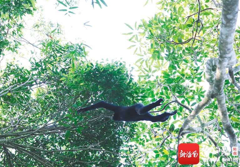 在白沙青松乡斧头岭,长臂猿树上飞跃。海南日报记者 李天平 摄尝试:无人机的入局