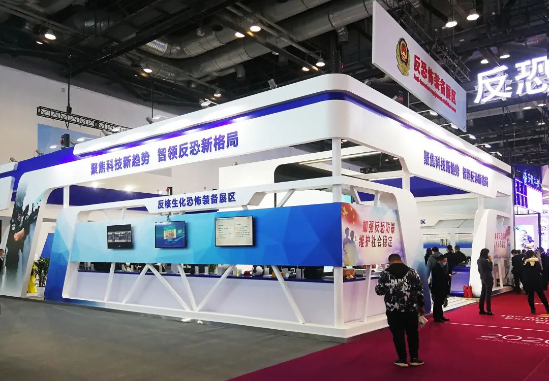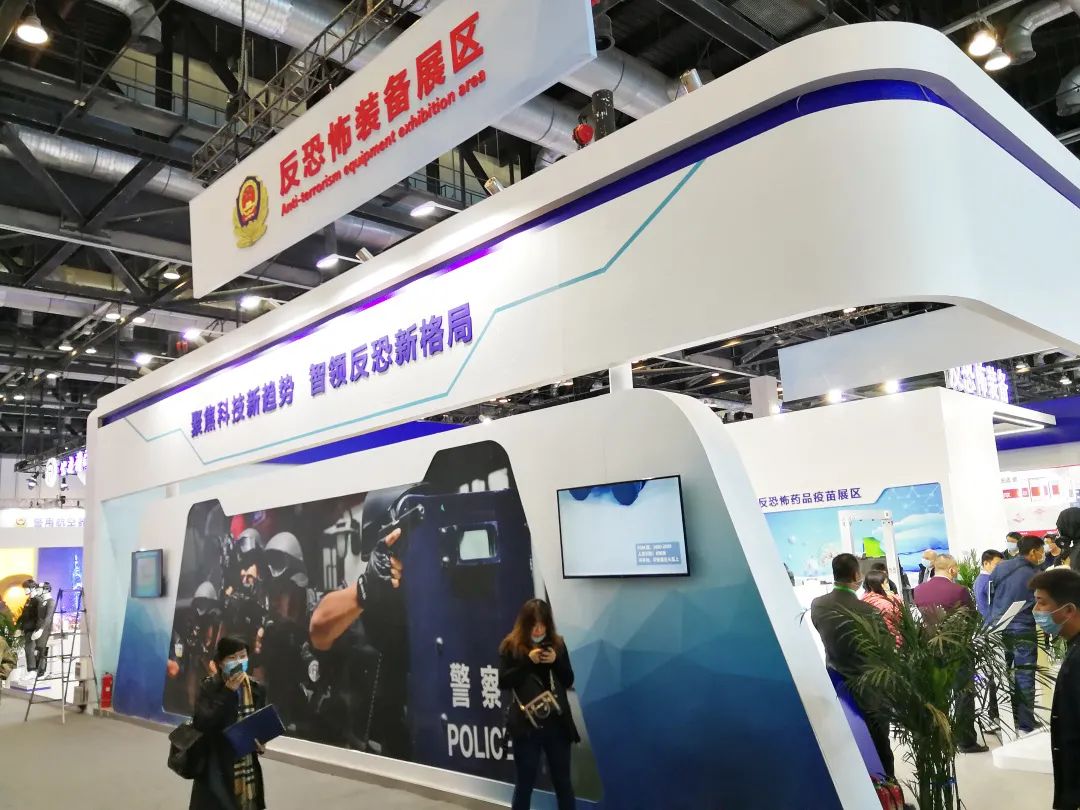 反恐怖装备展区,整个展台以警署造型为主,同时展示现代化高科技反恐技术和各类先进的反恐装备,用科技的力量打造
