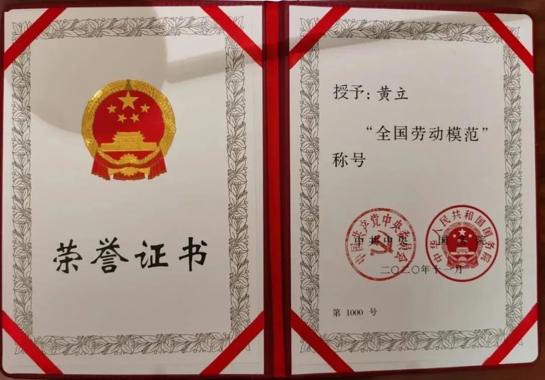 黄立荣获“全国劳动模范”荣誉称号全国劳动模范是党中央、国务院对全国各行各业各条战线上的杰出劳动者的最高褒奖与鼓励,是劳动者的最高荣誉。从1950年至2020年,中央先后召开了16次全国劳模表彰大会。70年沧桑巨变,劳动模范始终是时代的领跑者,是引领时代奋发向上的中坚力量。在此次表彰会上,习近平总书记也再次强调了,弘扬劳模精神、劳动精神、工匠精神,建设知识型、技能型、创新型劳动大军,从而推动实现中华民族伟大复兴的中国梦和建设社会主义现代化强国的新时代目标。