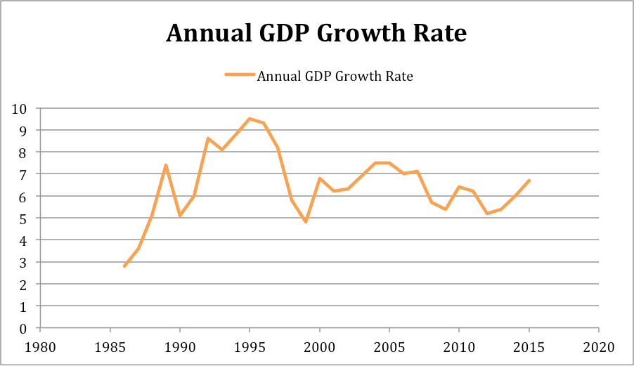 1986年起,越南启动“革新开放”,大力发展经济。1988年,越南正式公布了《外国投资法》,以规定外资企业所涉及的范围,当时主要涵盖旅游和服务性行业。自此,越南经济开始“起飞”,GDP年增速长期保持在6%以上。
