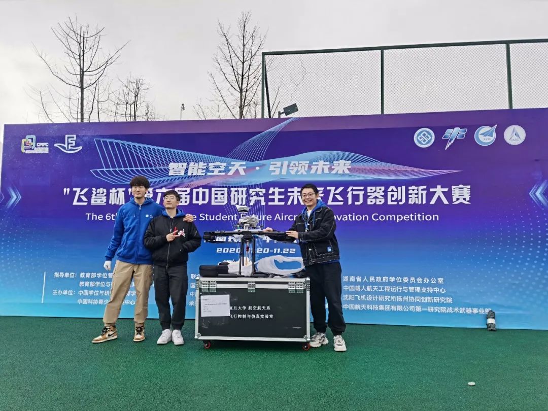 11月22日,在 “飞鲨杯”第六届中国研究生未来飞行器创新大赛中,团队最新开发的分系统——“Helicarrier”多旋翼空中自主对接起降系统,获得全场最佳实物演示奖和常规赛道二等奖。大赛由教育部学位与研究生教育发展中心指导,中国科协青少年科技中心主办,国际宇航联合会、中国航天基金会、中国宇航学会、中国航空学会联合主办。