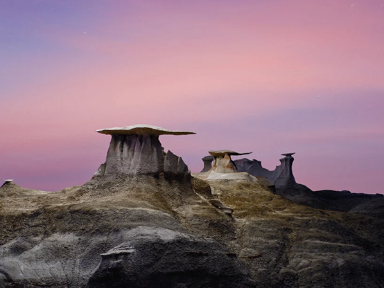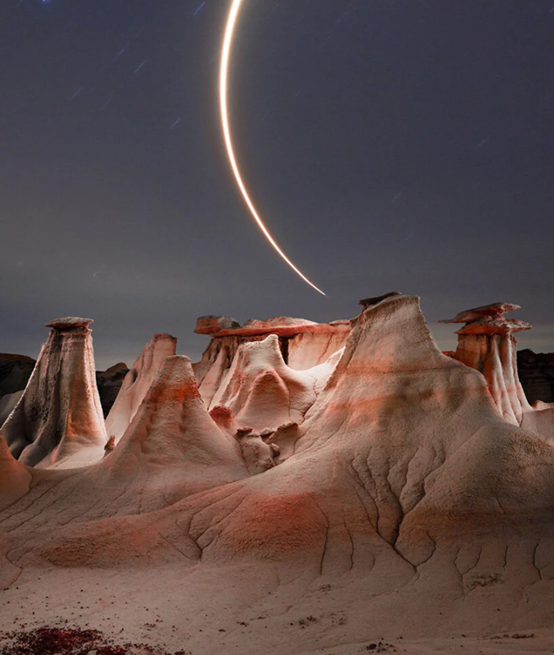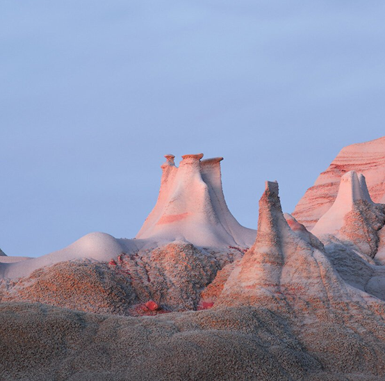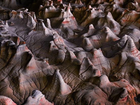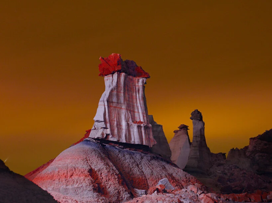在一些照片中,我们可以看到吴是如何利用gps无人机发出的光在侵蚀地周围制造光环效果的。这种光也出现在其他照片中,但不是以光环的形式,而是简单地照亮了景观的某些部分,仿佛神圣的光暴露了这些自然现象。就像吴对《巨大》杂志说的那样,“这个项目是用一种新的、不熟悉的光线呈现熟悉的景象,刷新你的视觉感受和感官体验。”