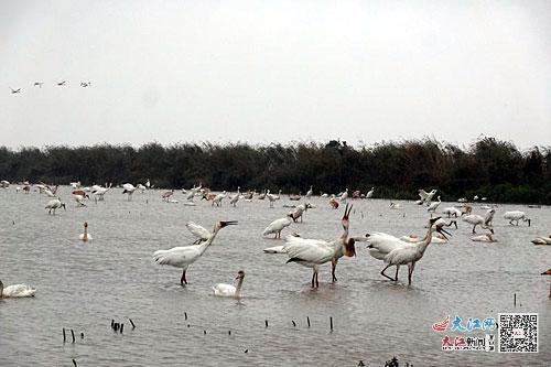 11月21日至30日,鄱阳湖保护区科研科及11个保护管理(监测)站野外监测统计到鸟类100种。其中,水鸟60种,共35万余只,以雁鸭类最多,达27万余只。