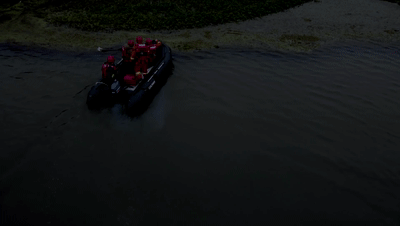 随后,尹吉宝通过无人机自带的喊话器进行喊话,同时降低飞行高度引导救援人员驾驶橡皮艇前往落水人员所在的位置,成功将其救援!幸运的是落水人员尚有意识,经到场的 120 救护车送往就近医院进一步救治,搜救任务圆满完成。