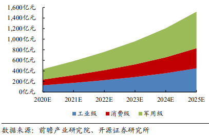 根据前瞻产业研究院数据,预计2025年我国无人机市场总规模将会达到约1500亿元,2020-2025年年均复合增速约为28.6%。