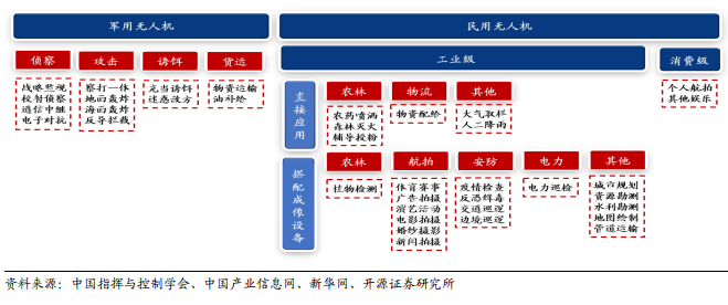 无人机按照应用领域可分为军用无人机与民用无人机。
