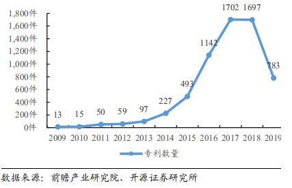 伴随着5G的正式商用,无人机应用的网络限制正在被逐步破除,同时工业4.0的到来或将带动工业无人机的大规模应用,从无人机研发专利数量来看,截至2019年底,我国工业无人机专利数量已达6320项。