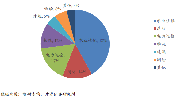 航空以及娱乐为民用无人机的主要使用场景,消费级无人机集中于航拍领域。2018年,航空以及娱乐占民用无人机需求的40%左右,航拍为娱乐用无人机的主要应用场景。