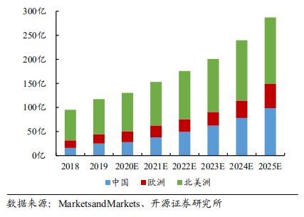 消费级无人机领域,2018年中国消费级无人市场规模就已是北美市场的两倍以上。