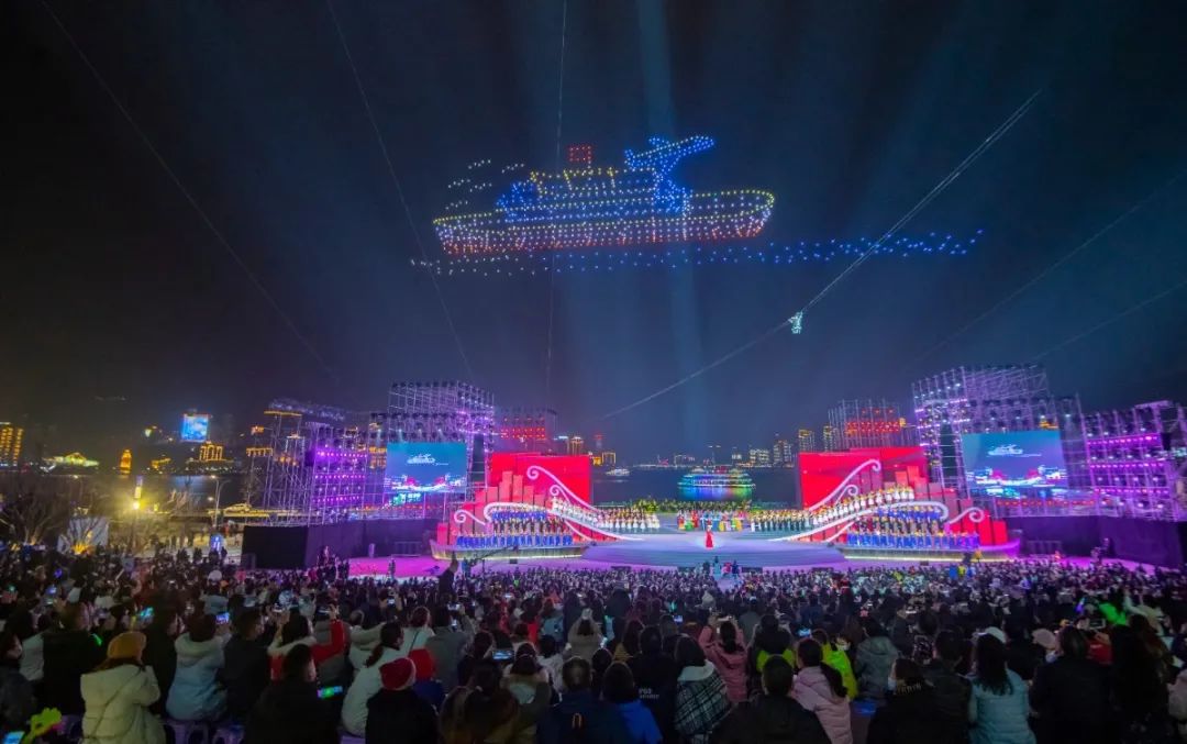 尤其是演出接近尾声时,1000架无人机同时升上高峡平湖上空,组成千变万化的绚烂图画和文字,场面震撼,激动人心,让平湖夜空格外炫酷,给观众带来一种全新的视觉享受。