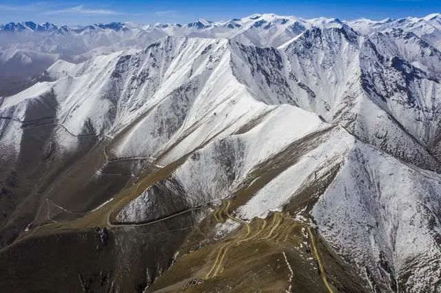 ↑通往新疆喀什地区叶城县西合休乡亚尔阿格孜村的道路蜿蜒在崇山峻岭间(5月1日摄,无人机照片)。新华社记者 胡虎虎 摄