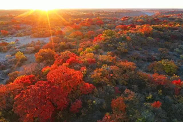 ↑这是10月12日拍摄的内蒙古自治区大青沟国家级自然保护区秋景(无人机照片)。新华社记者 刘懿德 摄