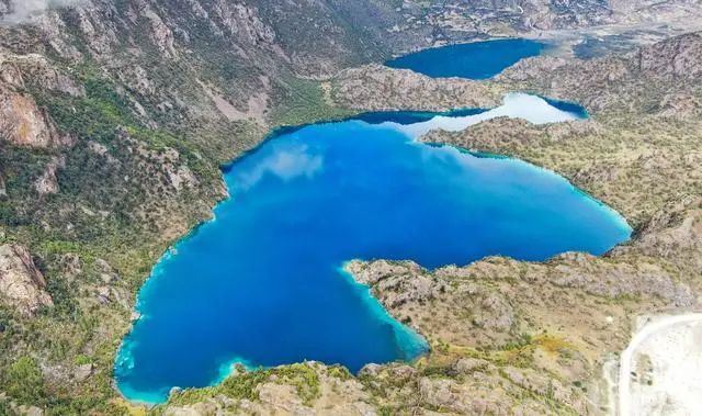 ↑这是西藏昌都的 “三色湖”。“三色湖”中被称为黑湖的湖水,近观呈黑色,而从空中俯瞰,则更多呈现明亮的蓝(9月26日摄,无人机照片)。“三色湖”位于昌都市边坝县边坝镇普玉村境内,由黑、白、黄三种颜色的三个湖组成,被几座小山隔开。湖水系山谷洼地多年积水而成。新华社记者 晋美多吉 摄