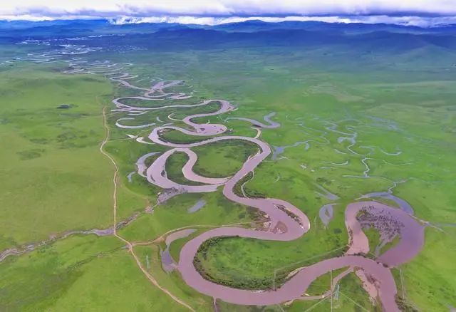 ↑这是四川省阿坝藏族羌族自治州若尔盖县的热曲河风光(6月17日摄,无人机照片)。新华社记者 刘坤 摄