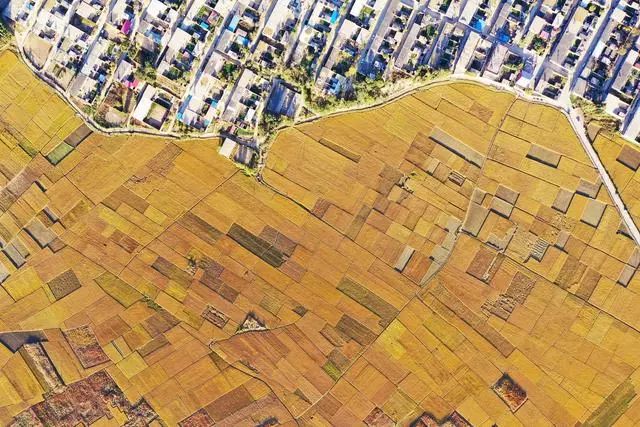 ↑这是在河北省滦州市古城街道蒋庄村拍摄的稻田(10月18日摄,无人机照片)。新华社记者 牟宇 摄