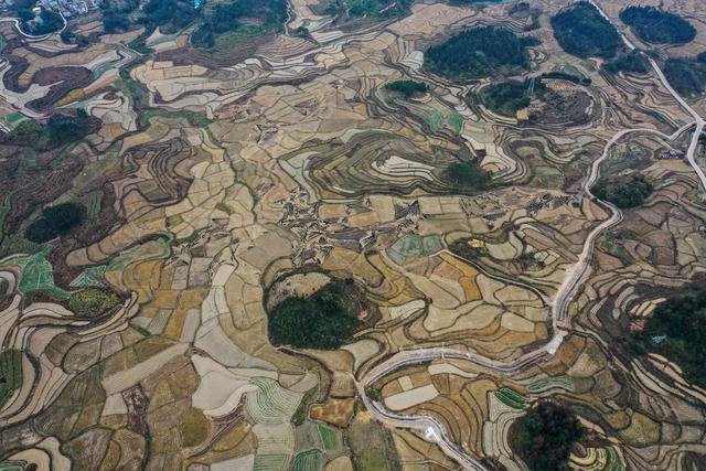 ↑ 这是广西融安县长安镇河勒村的田园景象(12月16日摄,无人机照片)。