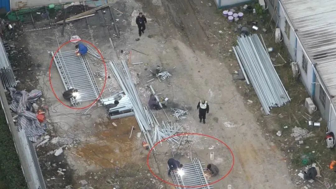 4名工人本以为工地四周围墙高筑,违规作业没人会察觉,殊不知,他们的行为早已暴露在警方的视野中。近日,嘉定警方利用无人机高空巡航,查获一起工地内违法使用明火作业的案件。
