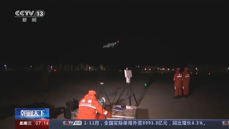 这是在近2万平方公里的搜索区域内,首次在隆冬时节使用无人机进行航天返回器的搜寻。和载人飞船返回舱相比,嫦娥五号返回器体积仅为其1/7,着陆面积却是其16倍。零下30℃的冰天雪地,夜间搜索工作难上加难。