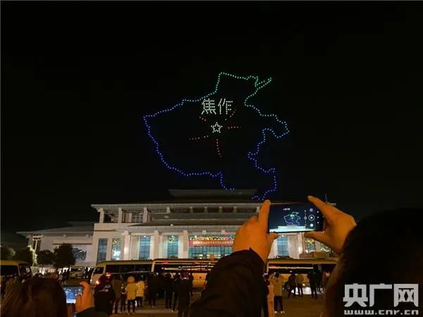 晚上21点左右,随着《我和我的祖国》歌声响起,无人机的彩色灯光布阵交错起落、色彩变换,由河南蓝鲸创新科技有限公司执行的无人机编队灯光秀顺利上演,400架无人机飞向天空,变换出多个震撼的造型,惹人惊叹。