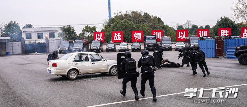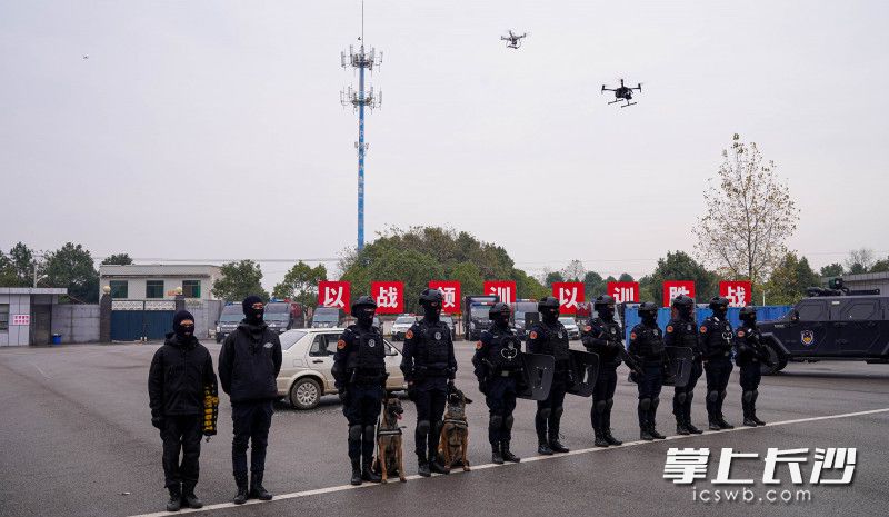 长沙晚报掌上长沙12月23日讯(全媒体记者 聂映荣 通讯员 马武泽)持枪“歹徒”驾车逃跑,警方将车截停,但“歹徒”负隅顽抗。此时,3架无人机升空,特警通过其传输实时画面至指挥部,进行高音喊话,并从空中投下爆震弹,警犬从车窗跃入咬住“歹徒”,特警迅速上前将其抓获。今日,长沙公安“2020·星城之剑”特巡警警务技能大比武活动及汇报演出在樊塘训练基地举行,特警开展了一系列实战演练。