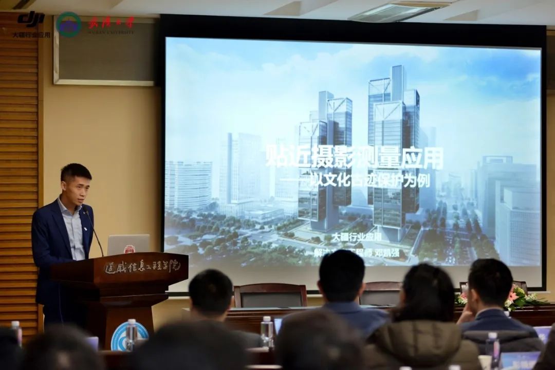 活动最后,大疆行业应用产品解决方案经理邓凯强,围绕贴近摄影测量技术的实际应用展开,深入介绍了大疆在遥感测绘领域的创新经验以及贴近摄影测量技术的发展现状和应用案例,如山西云冈石窟、广西花山岩画、哈尔滨龙塔、沈阳故宫、河南嵩岳寺塔、山西飞虹塔、陕西丰阳塔等文物古迹保护。