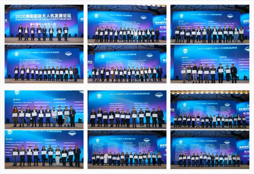 无人机行业的发展,离不开大家的推动与支持。为凝聚各方创新力量、彰显业界精英,推动无人机产业更加健康有序发展,在会议的尾声,举行了“2020中国无人机领航者”“2020中国无人机发展引领推动奖”“2020中国无人机先锋企业”“2020中国无人机行业杰出贡献奖”“2020中国无人机十大创新品牌奖”“2020中国无人机十大教育培训机构”的颁奖仪式。(获奖名单附后)