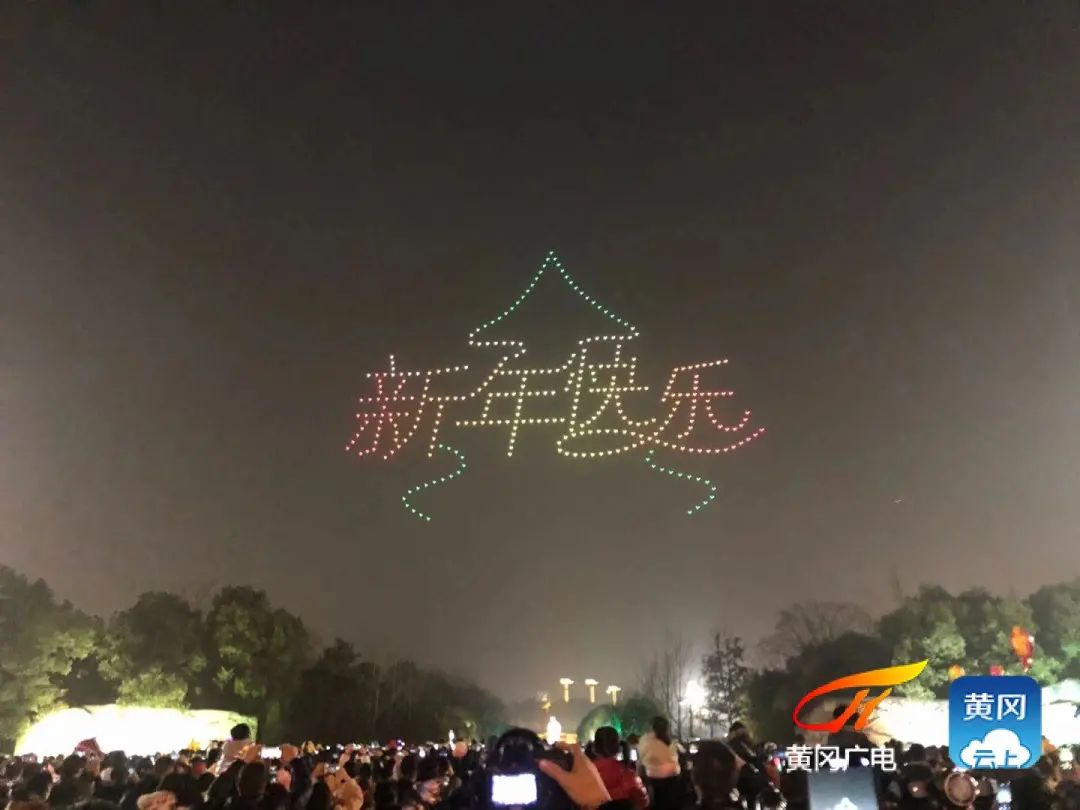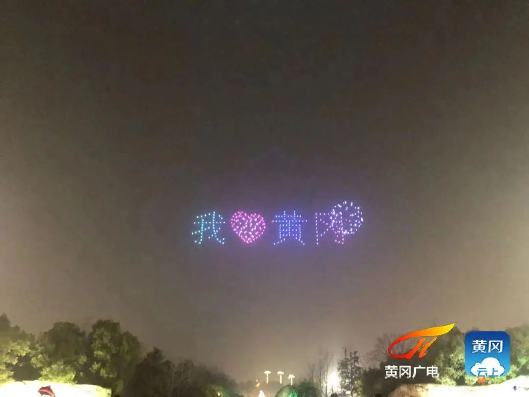 黄冈上空这场无人机表演太燃了!