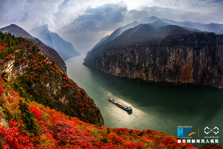 2020年1月,冬意越浓,红叶越盛,三峡红叶从“红一片叶子”到“红一座山川”。新华网发(王正坤 摄)