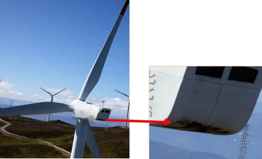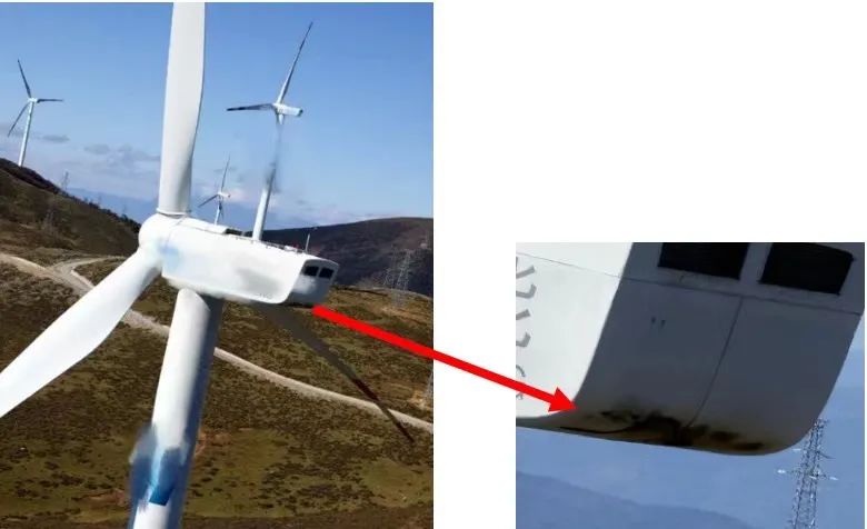 检测风机异常点:漏油,影响美观,可能导致叶片效率轻微降低,不会导致严重后果。