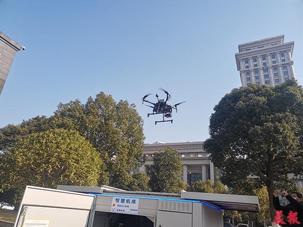 记者了解到,由于配置了专门的机库,所以这台无人机可以实现全天候无人值守,接受指令后,能够自主路线规划,自动起飞、巡航、降落和充电。单架次有效巡航距离大于10km,单站点有效覆盖范围大于20km。