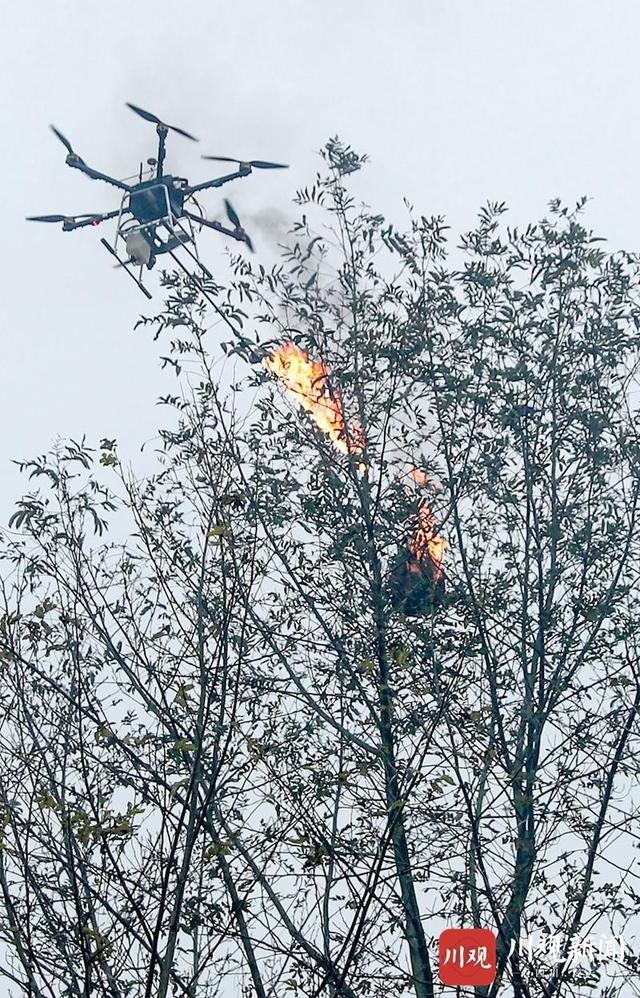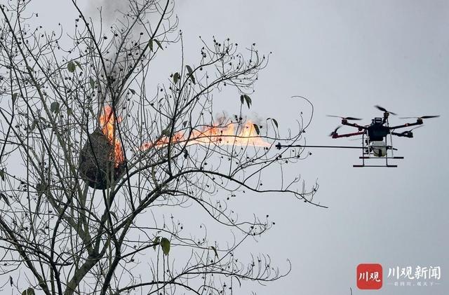 1月5日,广安华蓥市一支专门烧除马蜂窝的义工队伍,带着“喷火无人机”在明月镇走村窜户,为村民消除悬在头上的安全隐患。