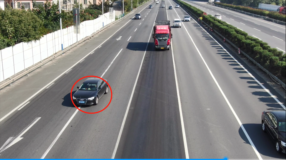 1月4日10时30分许,厦门高速交警一大队杏林中队民警利用无人机对沈海高速海沧互通路段进行巡查,发现一辆黑色小车在高速上违法变道。