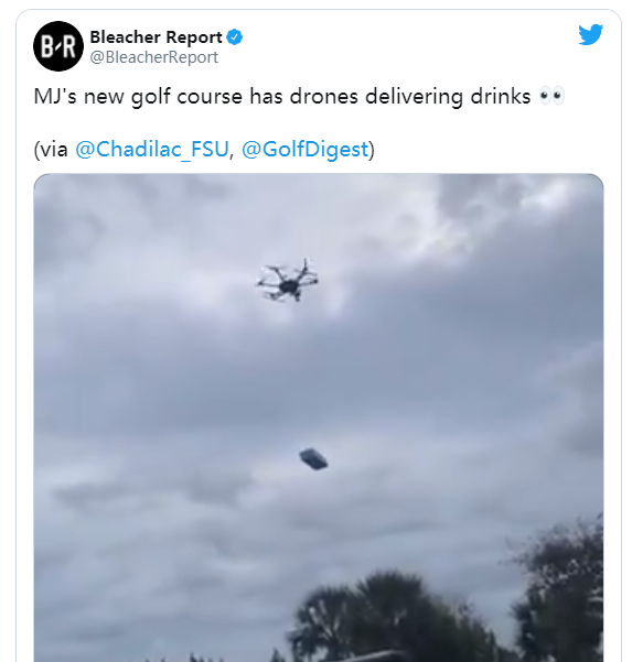 如果您在迈克尔·乔丹(Michael Jordan)的新高尔夫球场打高尔夫球时感到口渴时,您可以订购苏打水或啤酒,无人机将会运送给您。