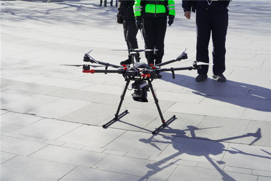 民警正在操作无人机