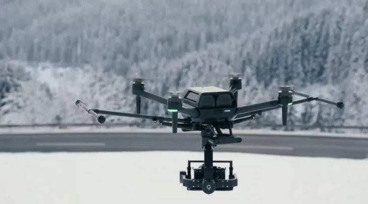 而从展示内容来看,这一款无人机可以挂载索尼旗下的Alpha相机,是可以搭载这一系列相机的最小无人机产品,将专门用于视频内容制作和专业摄影。