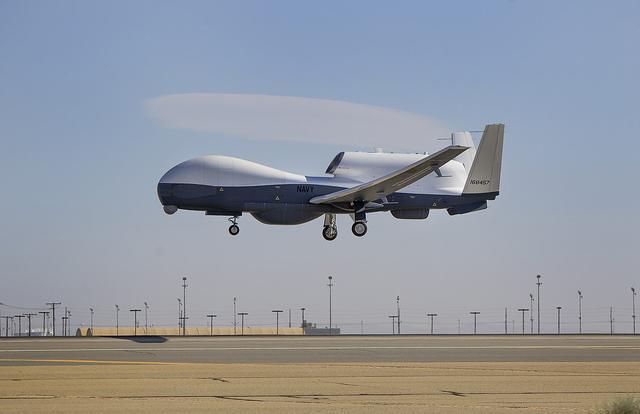 MQ-4C“海神”无人机是在RQ-4“全球鹰”战略无人机基础上针对美国海军需求研制的高空长航时无人机,MQ-4C无人机是美国海军最先进的水面监控平台之一。该机配备了雷达、光电等完善的探测设备,可大范围监视海上目标。该无人机最大航程15186公里,最长滞空时间30小时。
