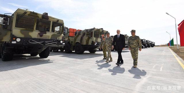 图为阿塞拜疆总统检阅中国远程火箭炮