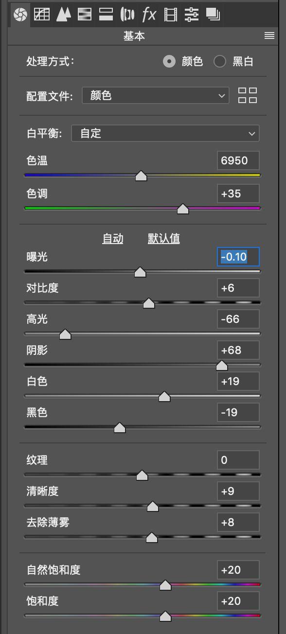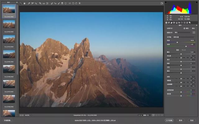 经过RAW格式接片,用12张2000万像素的RAW格式,得到了一张将近7000万像素的DNG格式图片。用飞侠的“一分钟出大片”技法进行RAW阶段处理。主要处理思路是色温、对比、饱和度和色调分离。