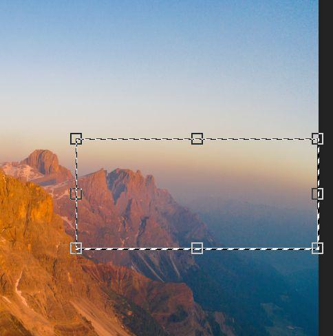 用矩形选取工具,把天际线不平的位置选中,然后CTL+T, 苹果COM+T,变形工具。