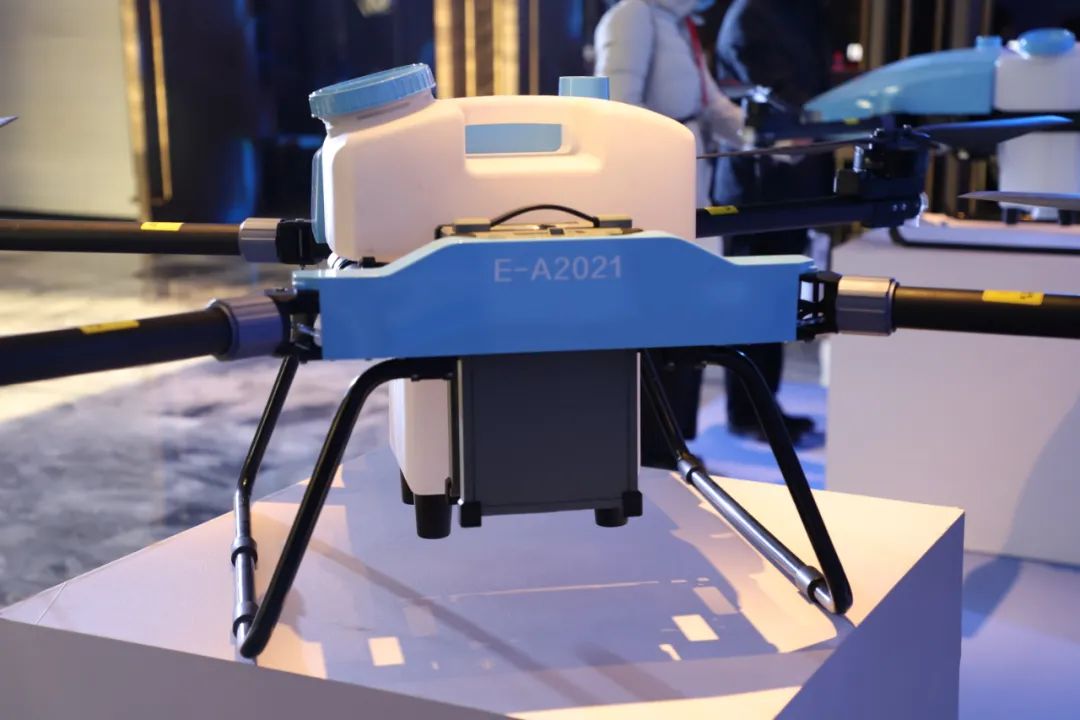 E-A2021系列植保无人机空机重量仅21.5kg,药箱容积为15L或20L,折叠后尺寸仅为920*650*520(mm)普通家载轿车即可装载,喷头采用离心、弥雾二合一,可作业喷幅5m。