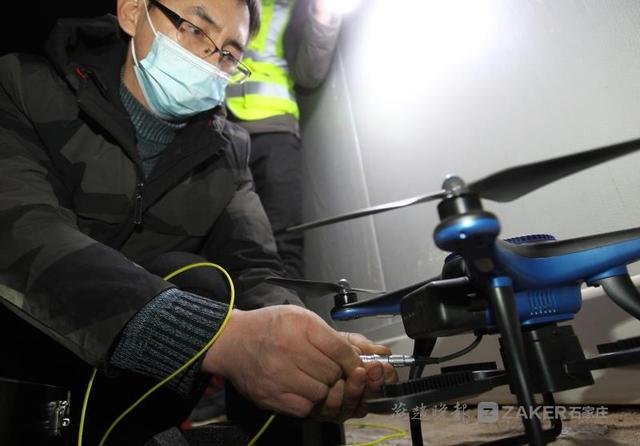 在现场,李红卫和他的志愿者团队的队员们一起,将 8 架极客桥系留照明无人机升上天空,像小太阳一样将施工现场照得更亮,而下方进行切割、进行空调等接线的建设者方能正常作业。" 虽然这里已经有了正式用电,但是切割、空调接线等作业的用电要求较高,需要无人机进行照明。" 李红卫告诉记者,每台无人机升空后,可以把 8000 平方米照得像白天一样。并且这种无人机照明时间长。夜间作业和救援场景情况复杂,有可能持续较长时间,应急照明必须支持长时间工作。其外接市电可实现不少于连续 300 小时的长时照明。因此在中铁十四局,中铁十七局,中铁十二局,石家庄市政公司的施工现场都有他们这些志愿者的身影。