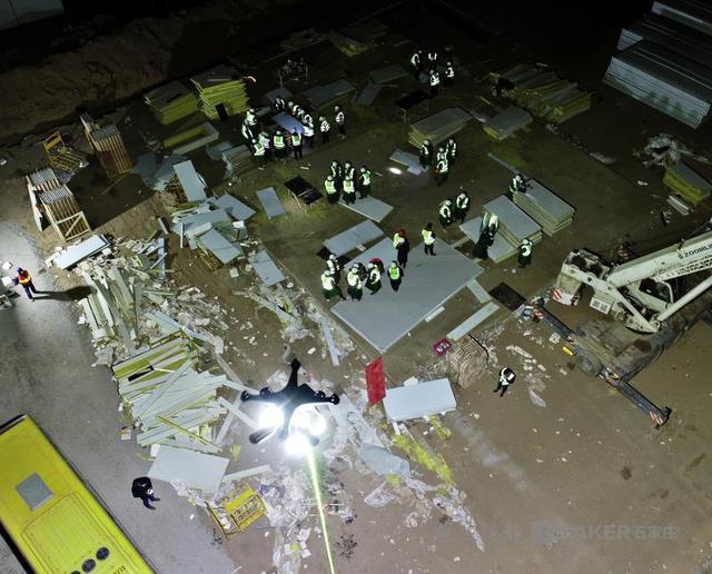 18 时许,天渐渐黑下来,石家庄黄庄公寓集中隔离场所的灯也亮起来了,建设者们又将挑灯夜战。而此时,现场部分区域照明达不到作业要求的地方,志愿者指挥的 8 架无人机已飞上了夜空,将这里照得如同白昼。