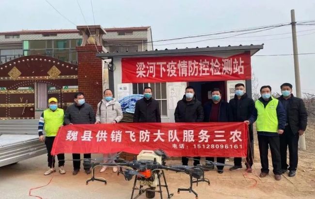 随后,在魏县税务局驻梁河下村工作队和魏县供销社驻董河下村工作队的积极协调下,供销飞防大队提供了无人机和消毒液到魏城镇董河下、梁河下和朱河下村等公共区域进行消毒消杀。同时,县应急管理局给梁河下村检测点送去了棉被、矿泉水等慰问品等。
