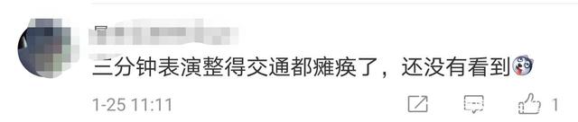 有网友表示说:三分钟表演整地交通都瘫痪了,还没有看到。